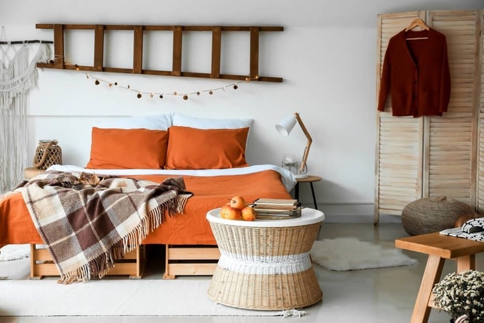 | Bạn có thể dùng màu cam trong phòng ngủ thông qua một số món đồ nội thất (Ảnh: Planner 5D). |