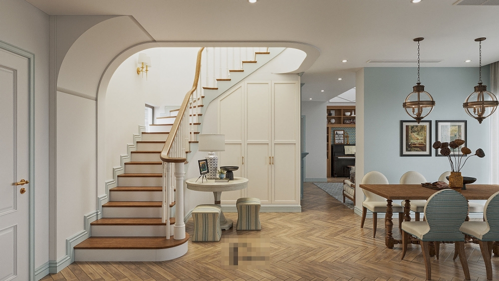 | Căn hộ Duplex do kiến trúc sư Vũ Anh Việt (Hà Nội) cùng các cộng sự thực hiện mang phong cách Farmhouse. Ở đây, anh sử dụng các gam màu hồng pastel, xanh pastel để làm bật lên không gian sống sang trọng nhưng vẫn đầy ngọt ngào, lãng mạn. |
