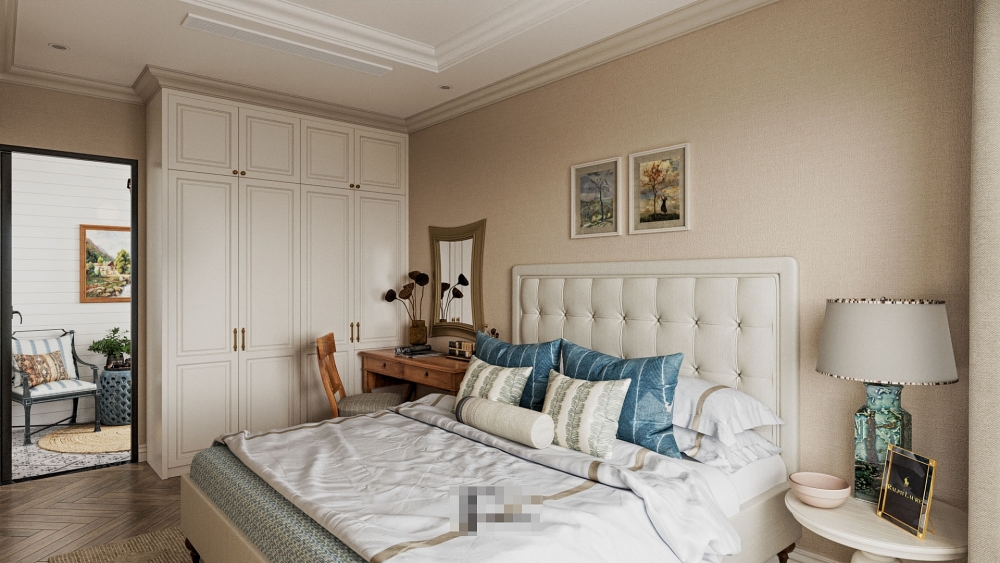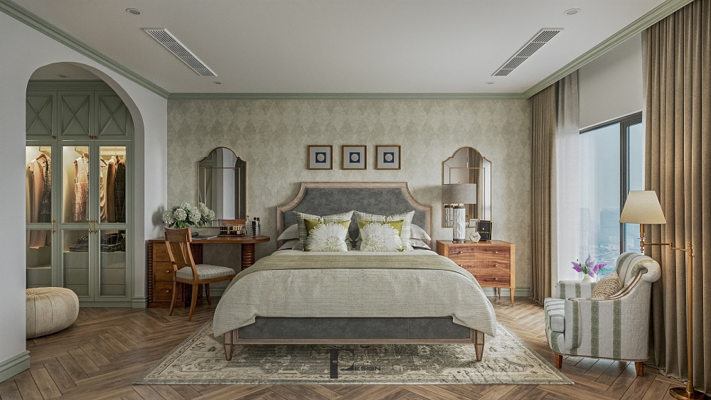 | Các phòng ngủ mang màu sắc khác nhau nhưng vẫn rất hài hòa với tổng thể chung. |
