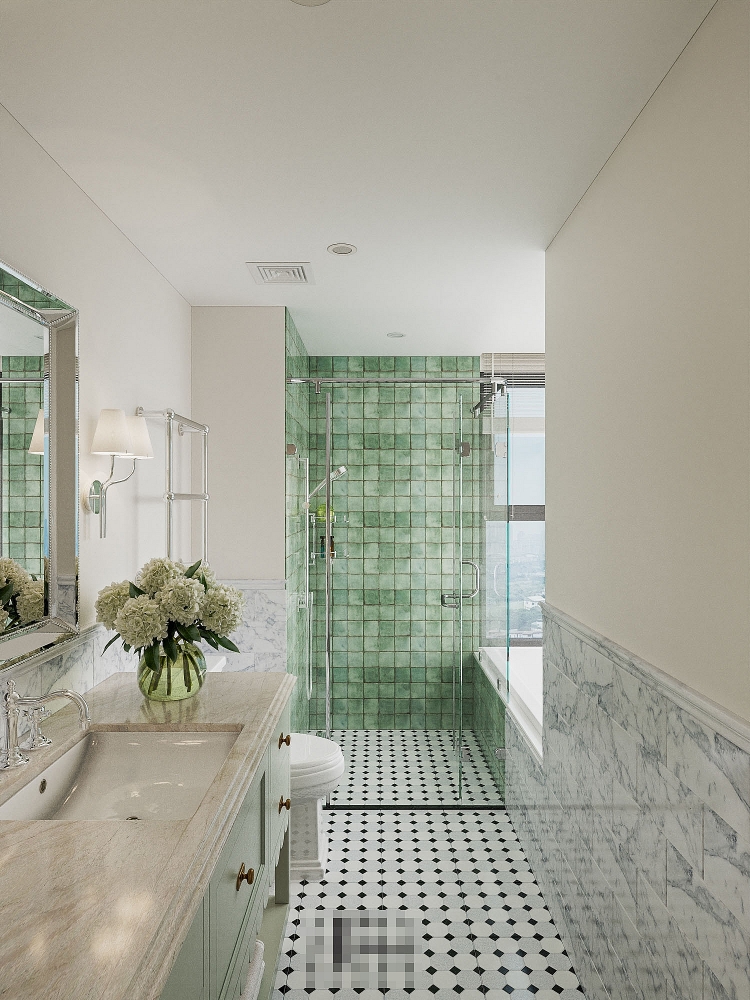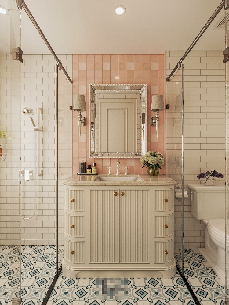 Căn hộ Duplex sử dụng các gam màu hồng, xanh pastel để làm bật lên không gian sống sang trọng nhưng vẫn đầy ngọt ngào, lãng mạn.