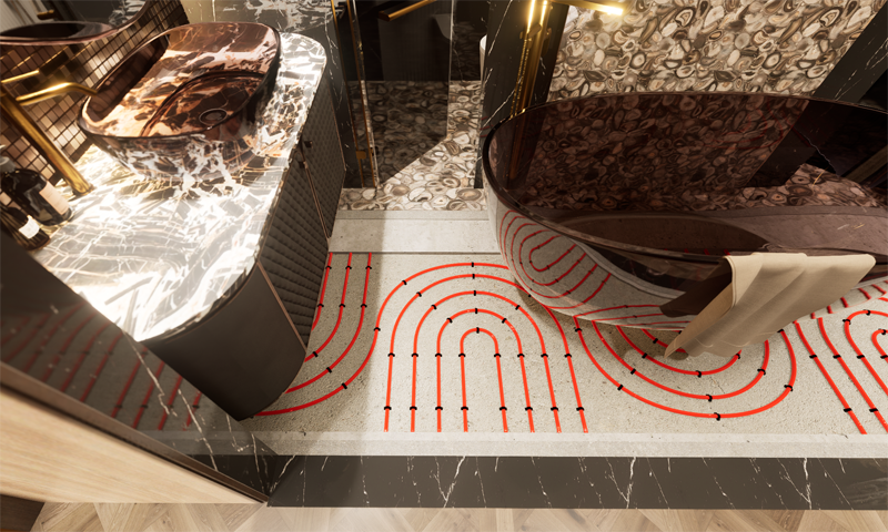 | Sàn sưởi âm sàn hai chiều với đường dẫn nước nóng bên dưới bề mặt sàn, nâng niu sức khỏe trong từng bước chân. |