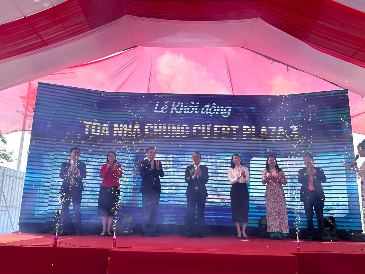 | Các đại biểu thực hiện nghi thức khởi động xây dựng tòa nhà chung cư FPT Plaza 3. |