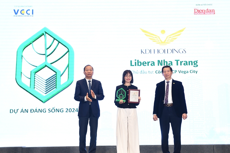 (Xây dựng) - Tại Lễ trao giải “Dự án đáng sống 2024”, Tập đoàn KDI Holdings đã vinh dự nhận cú đúp giải thưởng danh giá cho dự án Libera Nha Trang với danh hiệu “Dự án đáng sống” và thương hiệu Villa Le Corail, A Gran Meliá Nha Trang đạt giải “Khu nghỉ dưỡng được yêu thích”.