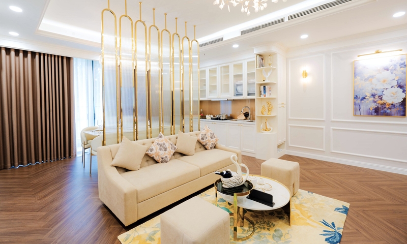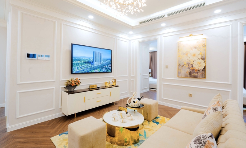 Phòng khách liền với phòng ăn cũng tạo ra khu vực sinh hoạt chung ấm cúng và rộng rãi để các gia đình đa thế hệ sum vầy. Đồng thời, thiết kế mở này còn cho phép chủ nhân căn hộ bài trí nội thất linh hoạt theo nhiều phong cách khác nhau, phù hợp cả để ở và kinh doanh lưu trú.