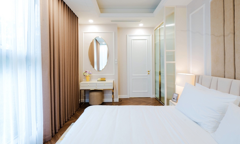 Rời không gian chung vào khu vực phòng ngủ, chủ nhân căn hộ sẽ được chào đón bởi không gian tươi mới, đầy sức sống nhờ hệ cửa kính chạm sàn giúp tăng diện tích đón ánh mặt trời. 100% phòng ngủ của các căn hộ tại Newtown Diamond có cửa sổ đón ánh sáng tự nhiên, góp phần giúp nâng cao sức khỏe và mang lại cảm giác tươi mới mỗi ngày cho chủ nhân căn hộ.