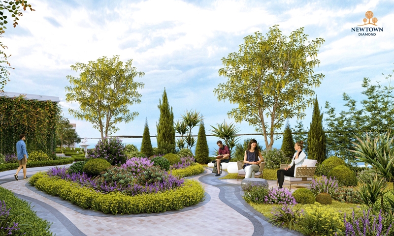 Không gian nghỉ dưỡng không chỉ hiện hữu trong nhà mà còn bao trùm từng bước chân của chủ nhân căn hộ tại Newtown Diamond. Bước ra ngoài căn hộ, loạt tiện ích cao cấp như vườn trên cao, skybar, trung tâm thương mại, bể bơi, phòng gym, spa, sân chơi… có thiết kế giao hòa với thiên nhiên sẽ đem lại không gian sống an lành và đầy tiện nghi, biến mỗi khoảnh khắc ở nhà thành khoảng thời gian nghỉ dưỡng tuyệt vời.