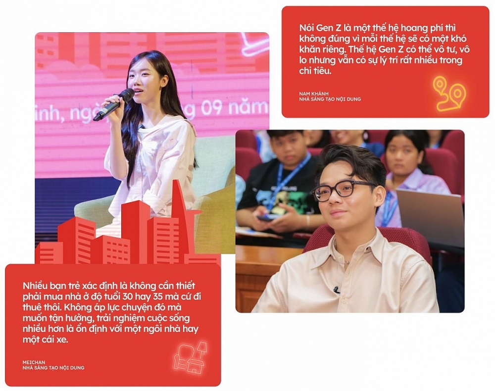 Hiện nay, đa phần Gen Y đang ở độ tuổi lập gia đình nên thường có tâm lý muốn sở hữu nhà cửa, xe cộ để ổn định và có cảm giác an toàn. Trong khi đó, phần lớn Gen Z lại có lối sống và hành vi tiêu dùng linh hoạt hơn. Meichan cho rằng Gen Y có áp lực mua nhà nhiều hơn Gen Z, còn nhiều bạn Gen Z mong muốn tận hưởng, trải nghiệm cuộc sống nhiều hơn là việc ổn định với một cái nhà hay một cái xe ở độ tuổi 30 - 35 như các thế hệ trước.