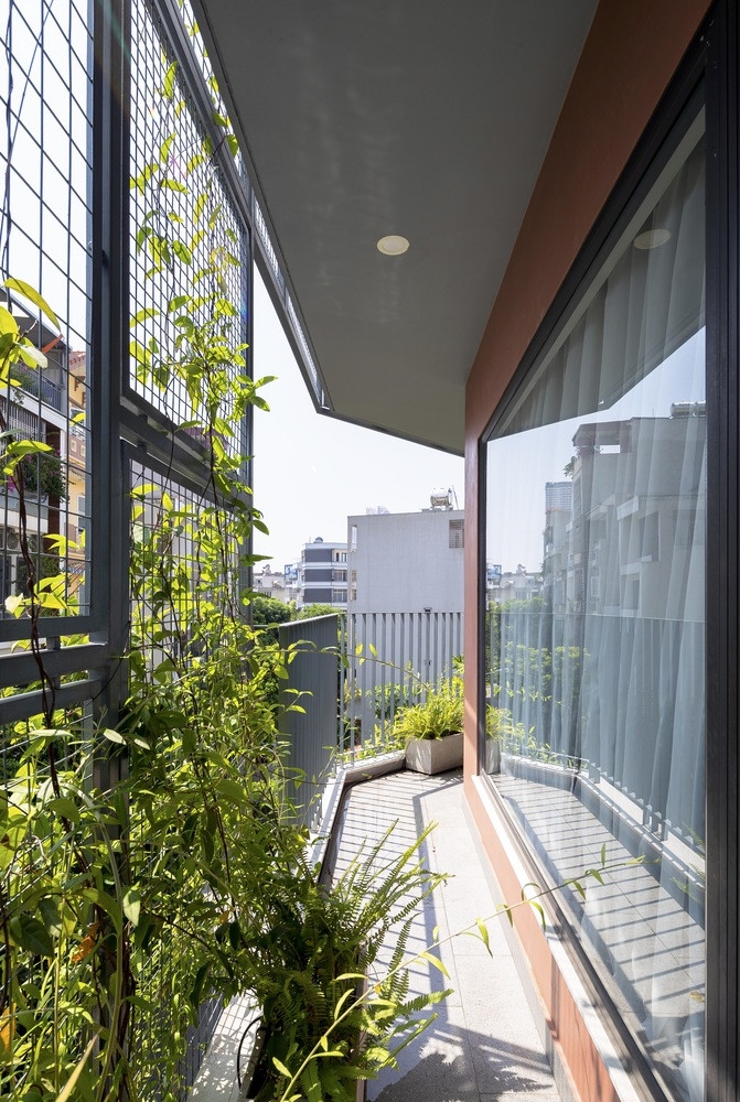 Điểm nhấn của căn nhà phố là khắp các ban công đều tràn ngập sánh sáng và không gian xanh.