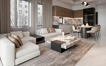 Hiện nay, phòng khách mở đang trở thành lựa chọn của nhiều gia đình trẻ. Không gian liên thông giữa phòng khách, bếp và bàn ăn tạo sự thoáng đãng, tăng tính kết nối giữa các thành viên, mang lại sự tiện nghi và gắn kết trong sinh hoạt hằng ngày.