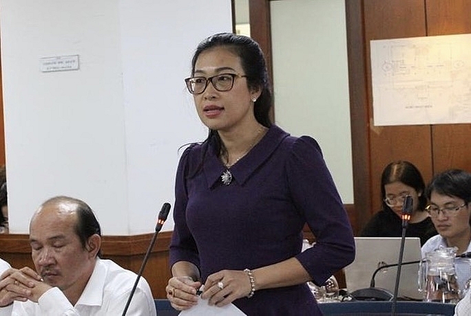 | Bà Lê Thị Loan, Phó trưởng Phòng Tổ chức cán bộ, Sở Xây dựng Thành phố Hồ Chí Minh tại họp báo chiều 8/8. (Ảnh: Phan Anh) |