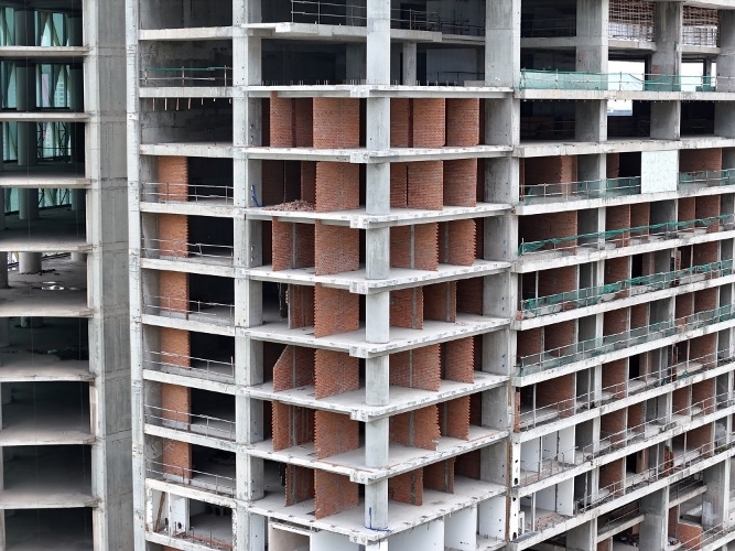 Công trình khóa cửa im ỉm, bên trong không bóng người, vật liệu ngổn ngang.